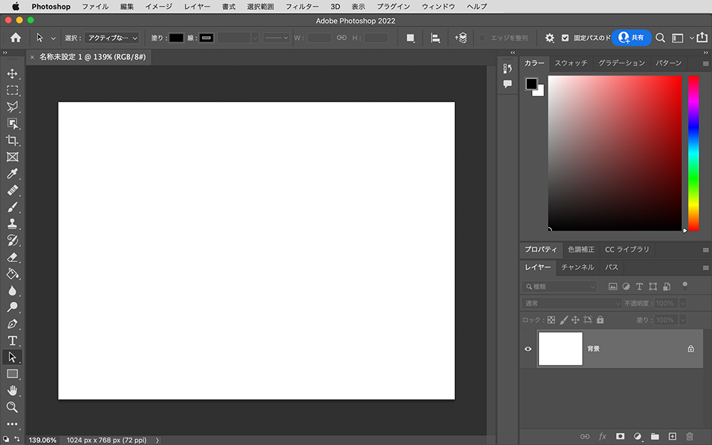 では、Photoshopの画面の役割が分かったところで、次にそれぞれの場所でできることを実際に手を動かして見ていきます。