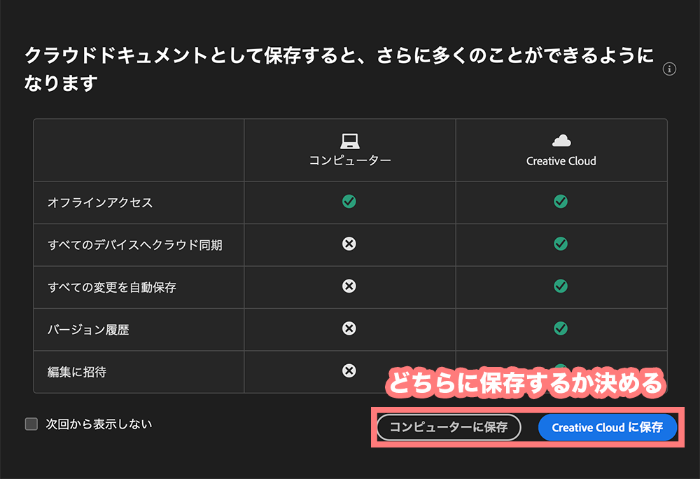 そしてコンピューターかクラウドどちらに保存するか決めてクリックします。