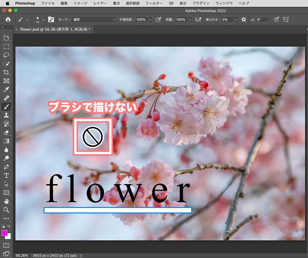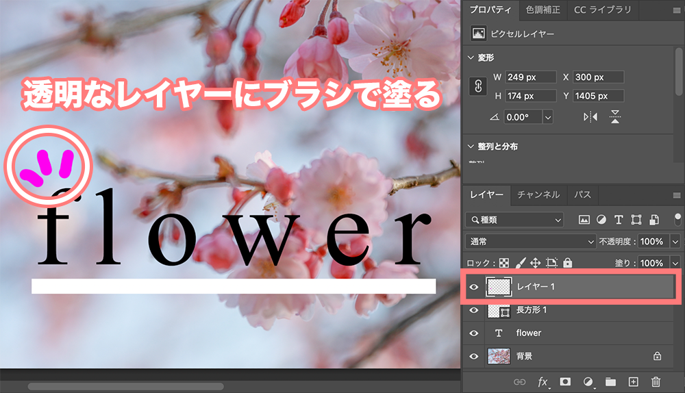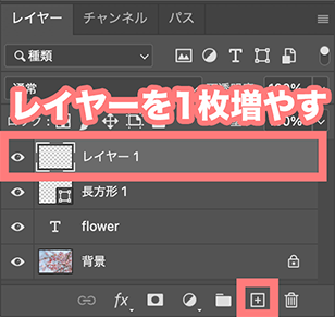 ブラシで描くときには、長方形や文字のレイヤー、つまり紙に描くことはできないので、新たに紙を加える必要があります。