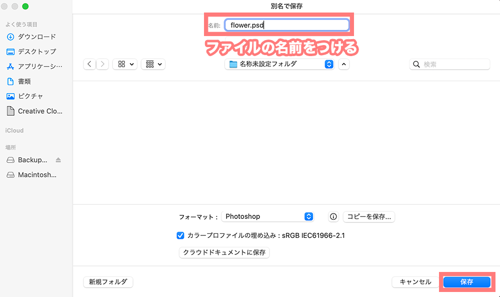 完成したら、保存していきます。