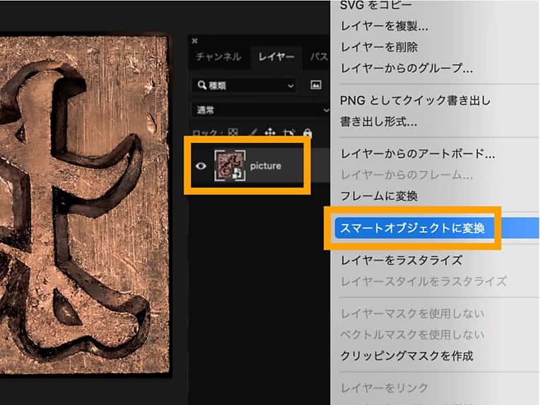Photoshopを起動し、サンプルアセットの「camera_raw.psd」を開きます。レイヤーパネルでレタッチするレイヤーを選択し、スマートオブジェクトに変換します。そうすることで元の画質を保ちながら作業することができます。また、いつでも元画像に戻って編集をやり直すことが可能です。
