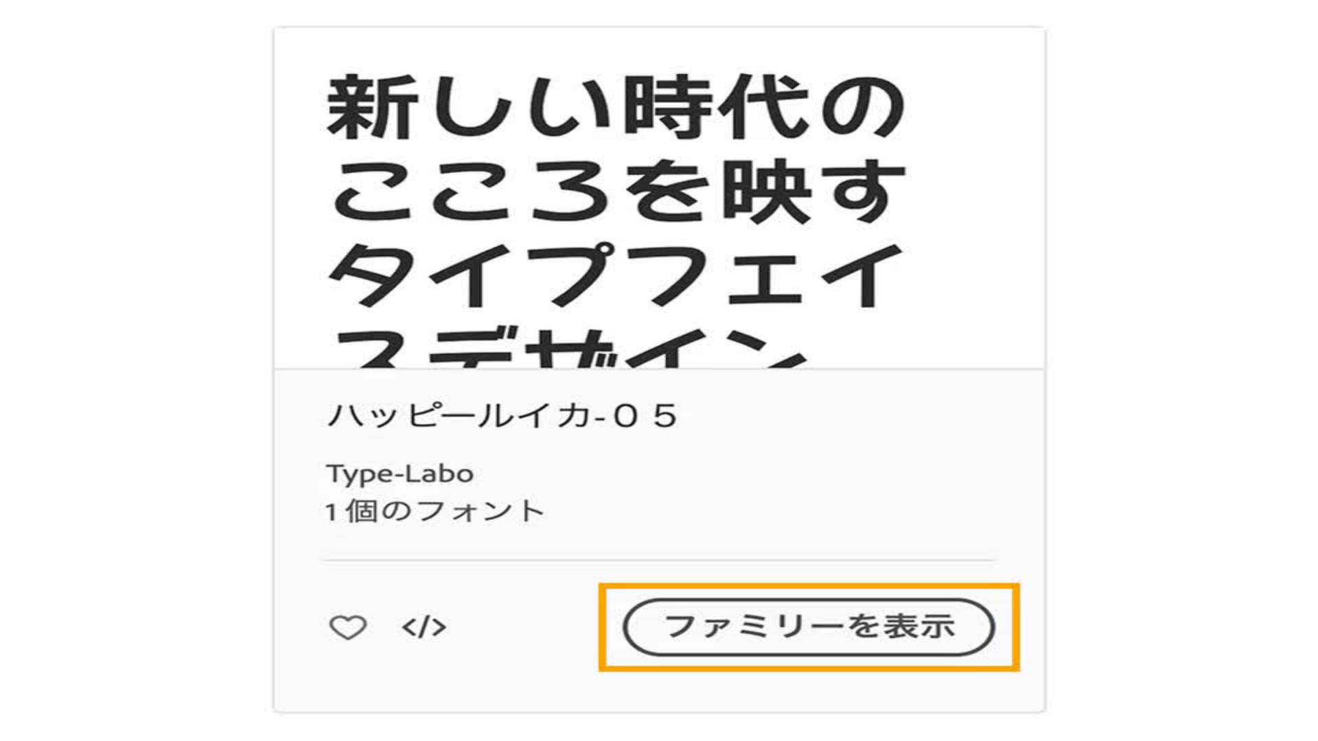 フォントをダウンロードするには、選んだフォントの「ファミリーを表示」をクリックします。全て一括でダウンロードする場合は、ページ右上にある「フォントをアクティベート」をスライドさせます。「フォントのアクティベーションが完了しました」の表示が出れば、フォントが使用可能になります。同じ手順で下記のフォントもアクティベートしましょう。「Broadacre Hairline」「モッチーポップP」