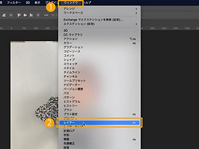 「ウィンドウ>レイヤー」をクリックし、レイヤーパネルを表示させます。