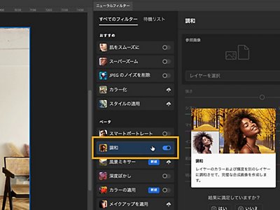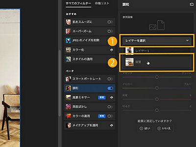 「ニューラルフィルター」を使えば、簡単に自然な背景の合成ができます。