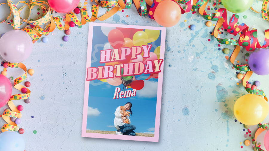 しばらくすると、⾵船が浮いた空の背景画像が⽣成され、余⽩のスペースが塗りつぶされます。