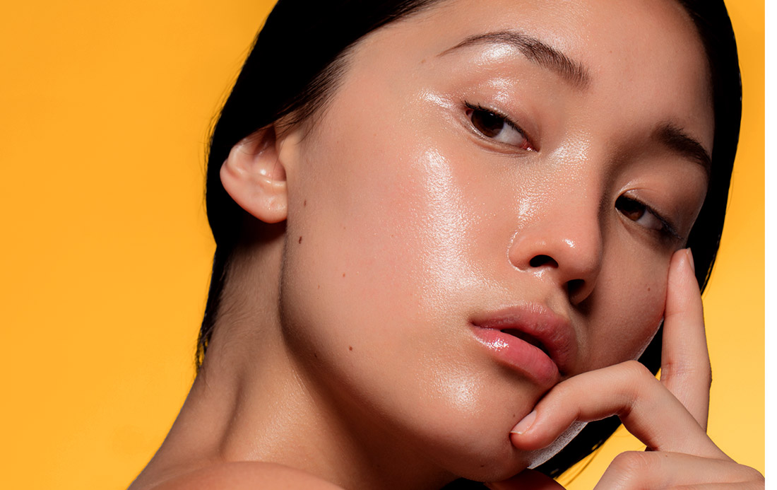 モデルの顔のクローズアップ写真を使用します。狙いどおりの効果が得られるように、肌のみずみずしさが細部までよく表現されている画像を選びます。
