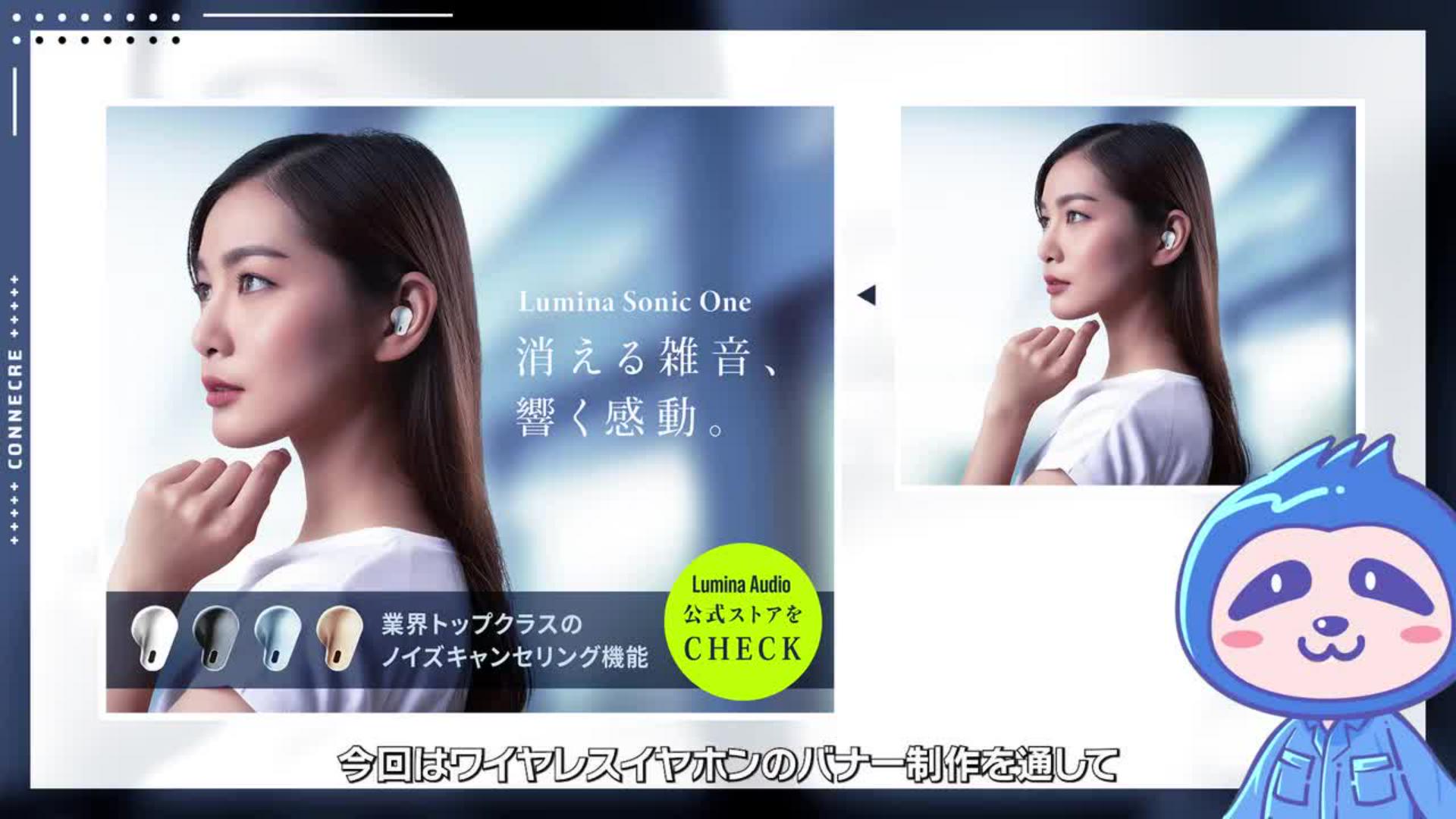 ワイヤレスイヤホンのバナー制作をしながら実際に試してみましょう。