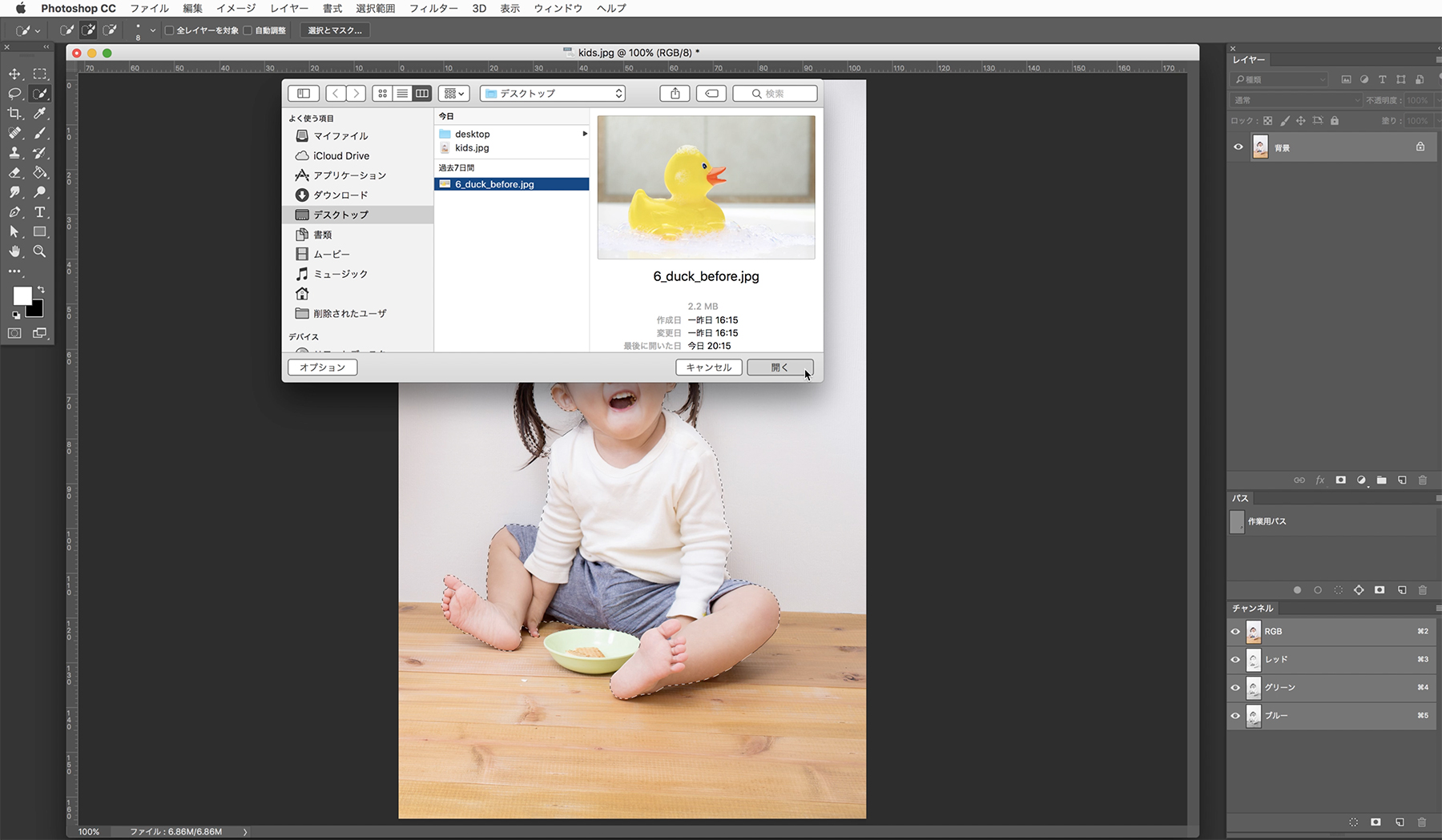 【レイヤー1】と名前のついた新規レイヤーに、切り抜いた子供の画像が配置されました。