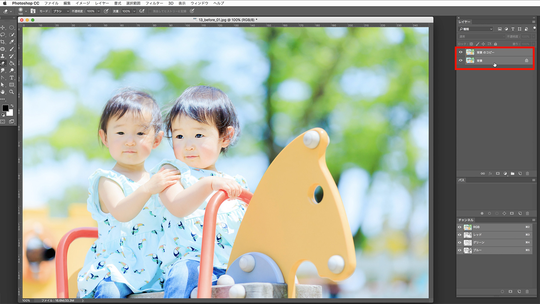 レイヤーを複製した時点で、レイヤーの上下を間違えてしまった場合は、レイヤーパネルでドラッグ&ドロップすれば上下を入れ替えられます。