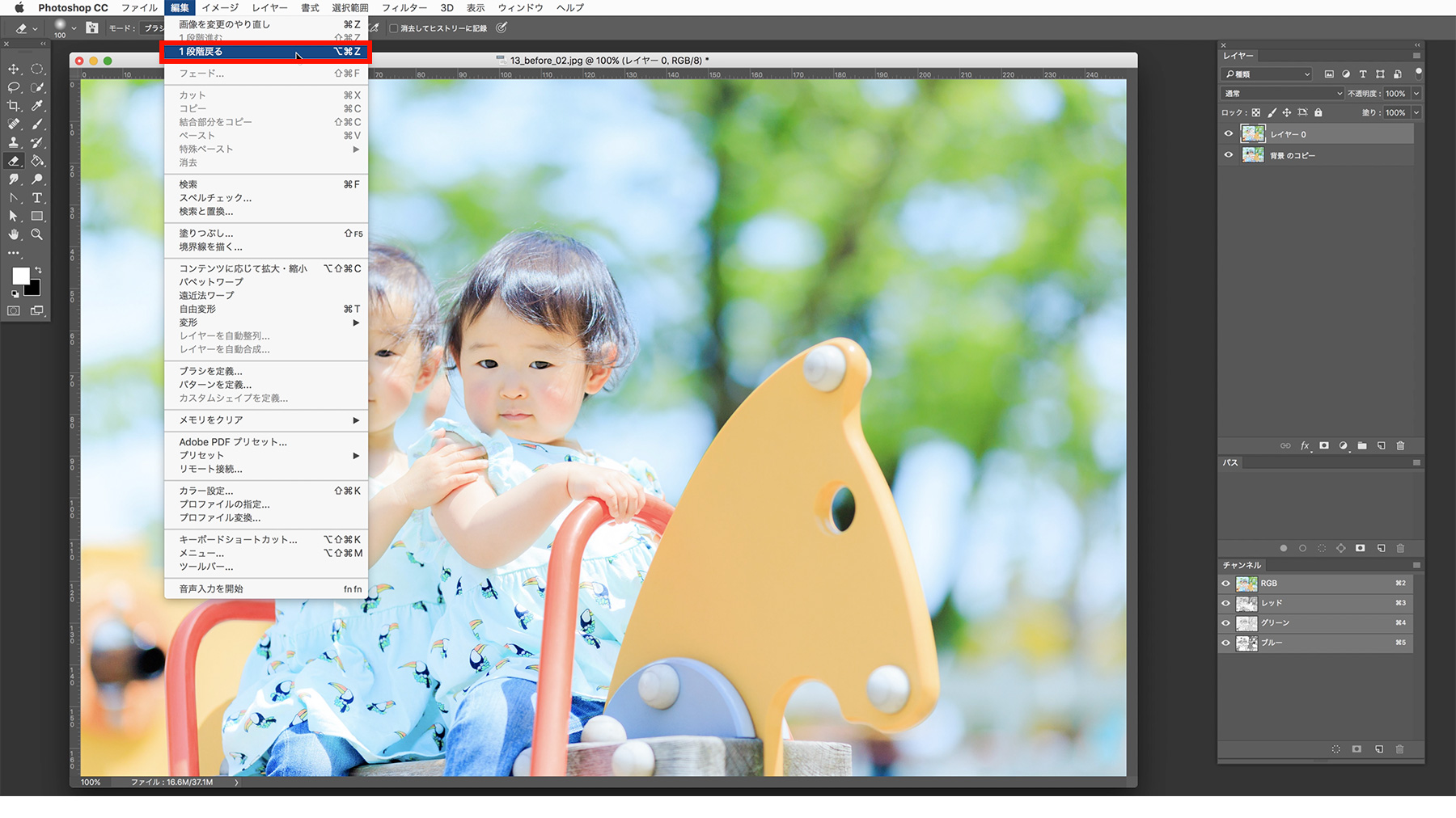 元の画像ファイルはアプリケーションメニューから[ファイル]→[閉じる]を選択して閉じておきます。