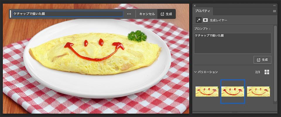 次は、オムライスの上に、ケチャップで描いた顔を生成します。