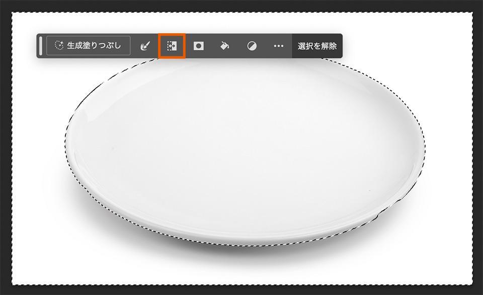 お皿の選択範囲ができたら、選択範囲を反転します。