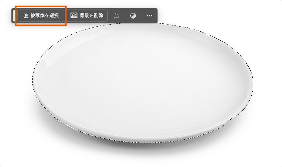 お皿の選択範囲を作成します。コンテキストタスクバーから「被写体を選択」のボタンをクリックします。