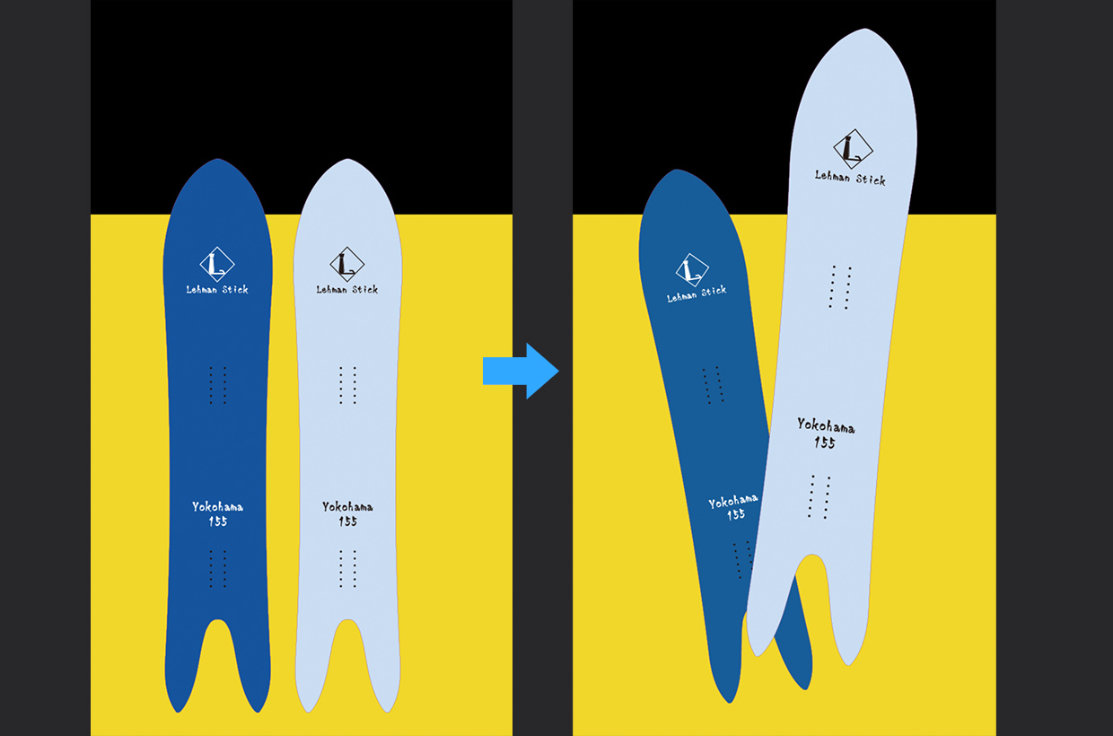 サイズや傾きに変化を与えて、ボードに動きを出していきます。