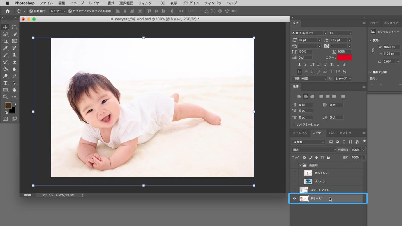 1 「赤ちゃん1」レイヤーが選択されていることを確認します。