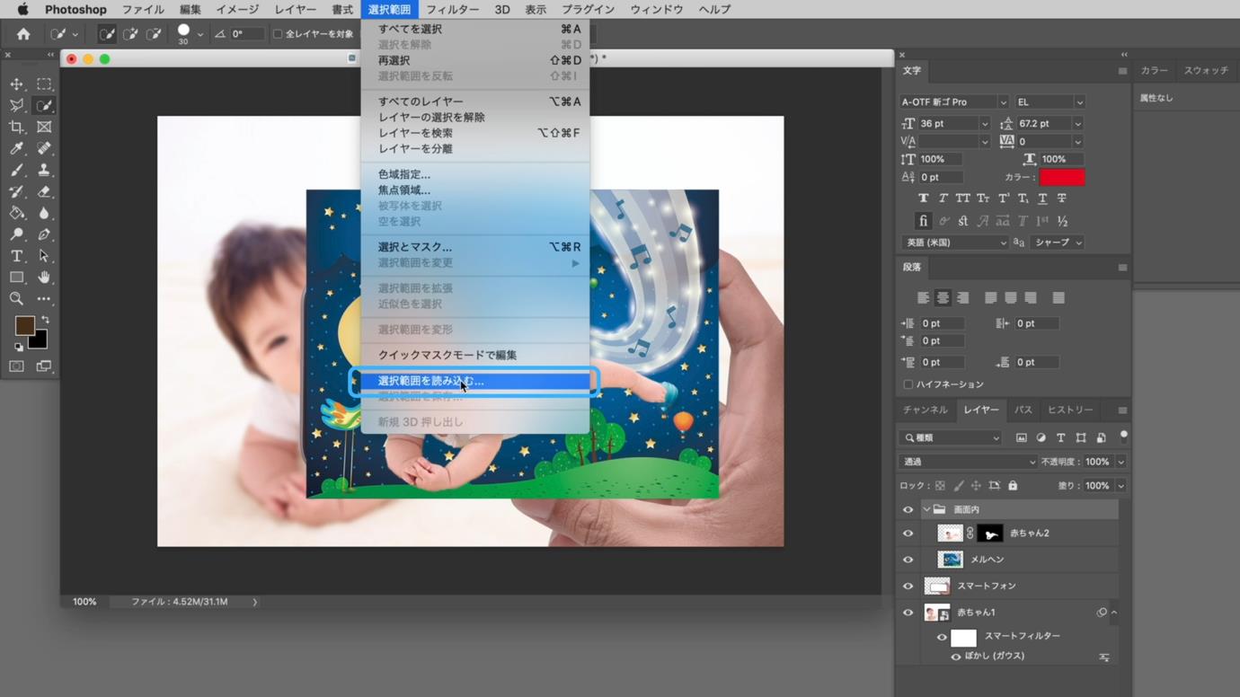 3 「選択範囲」メニューから「選択範囲を読み込む」を選択します。