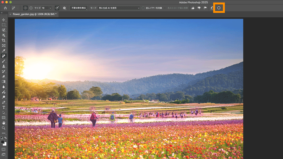 人物が全て検出されているのを確認できたら、上部オプションバーの「O」ボタンをクリックします。元から何もなかったかのように、人物が全て削除されます。
