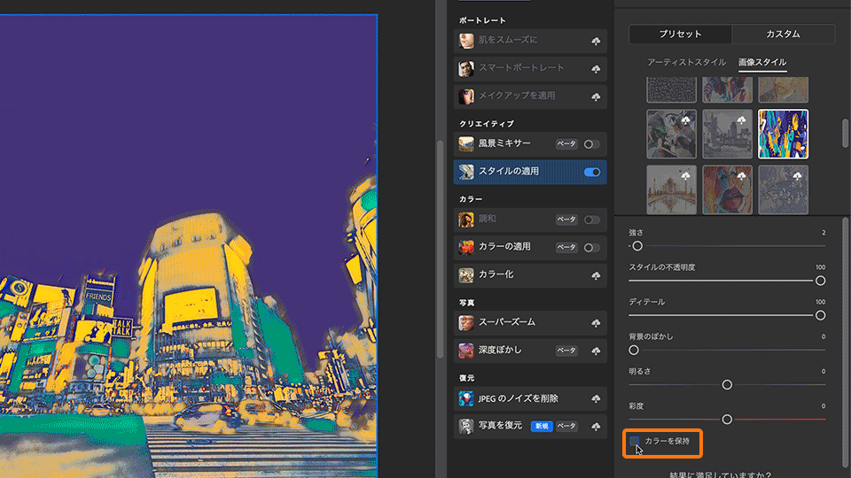ニューラルフィルター(スタイルを適⽤)