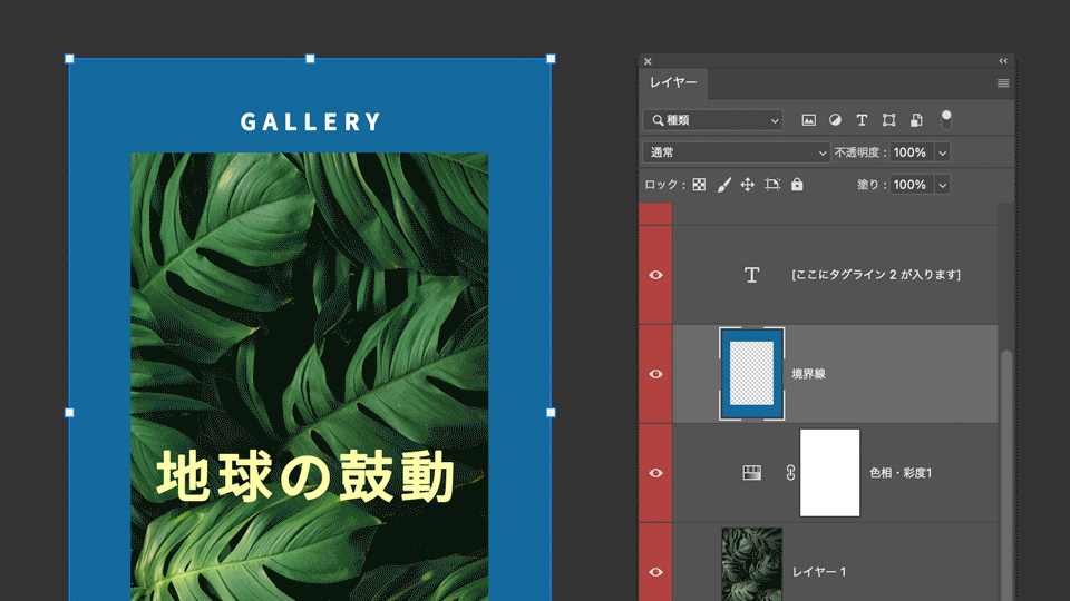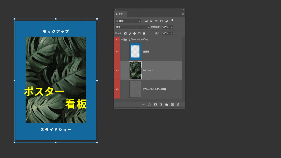 レイヤーパネルで、⼀番下の「プレースホルダー画像」レイヤーを選択します。