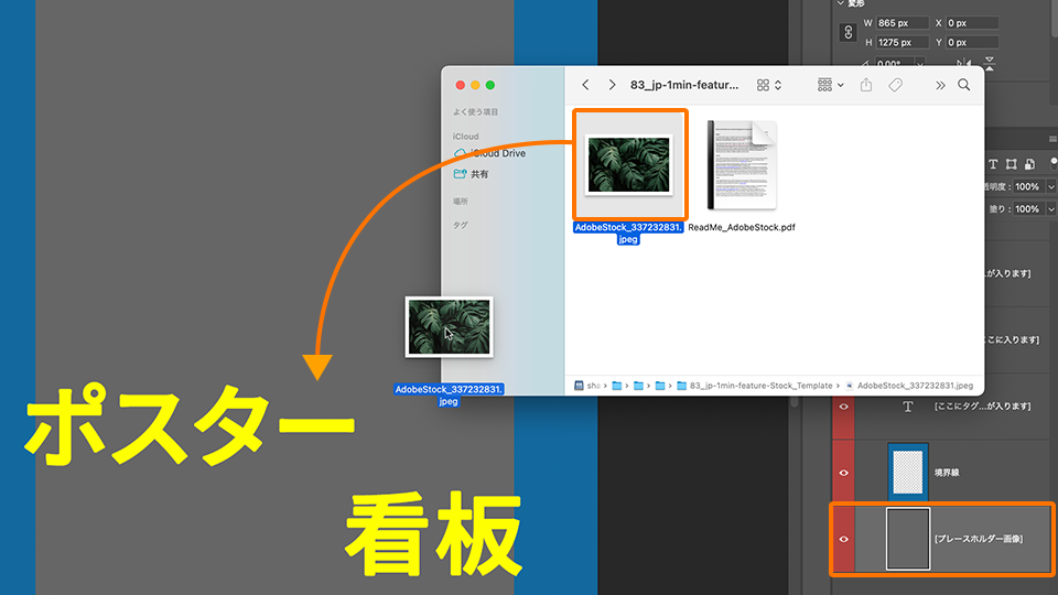 ダウンロードしたAdobe Stockの画像素材をプレースホルダーレイヤーに配置します。