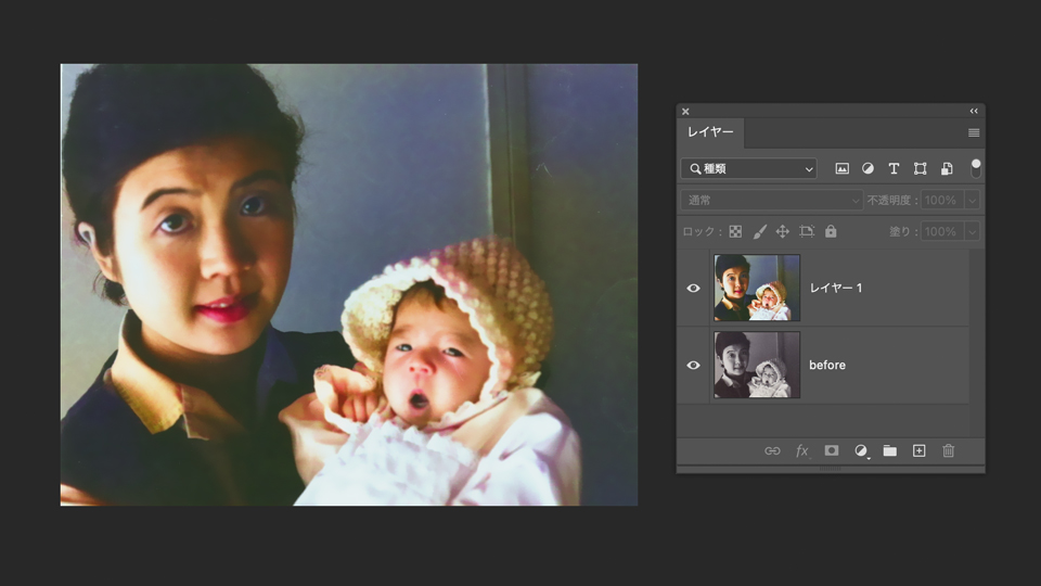 Photoshopの「カラー化」機能を使用すると、白黒写真からAI機能が色を予測して自動的にカラーにすることができます。カラーフィルムがなかった昔の白黒写真でも、あらかじめ用意されたカラープロファイルを選んで適用したり、また色調を細かく調整することも可能です。まずは下の動画で一連の制作工程を確認してください。