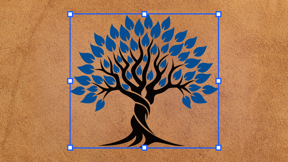 ⽊のイラストがペーストされたら、バウンディングボックスのハンドルをドラッグして縦横⽐を保ちながら⼤きさや位置を調整します。