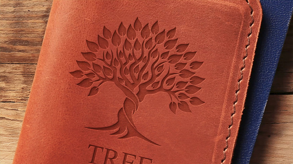 ⽪のテクスチャ画像に⽊のイラストを配置する