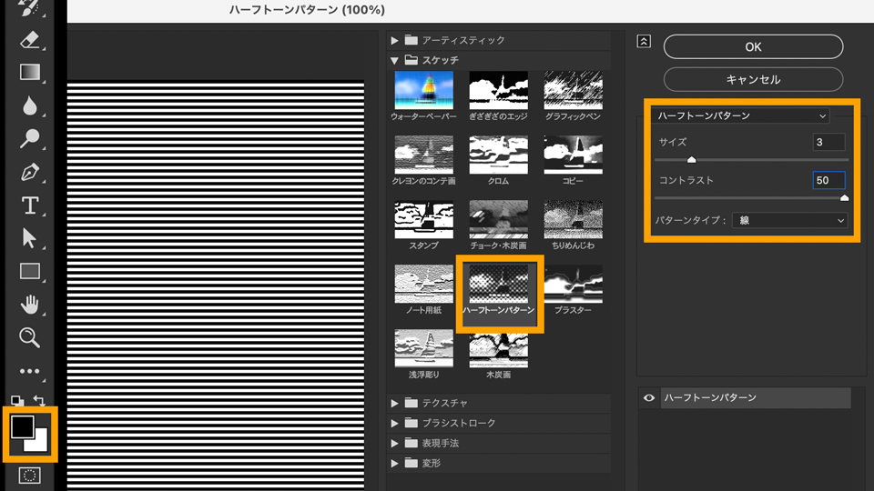 レイヤースタイル(チャンネル)、フィルターギャラリー(ハーフトーンパターン)
