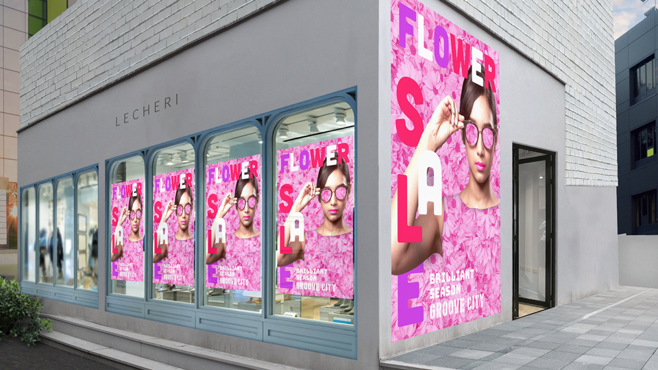 完成した画像は、ポスターの利⽤例として⾒る側にリアルに提⽰することができます。「消点」機能は、パースのついた画像で不要なものを除去するときなどにも便利にお使いいただけます。ぜひ試してみてください。