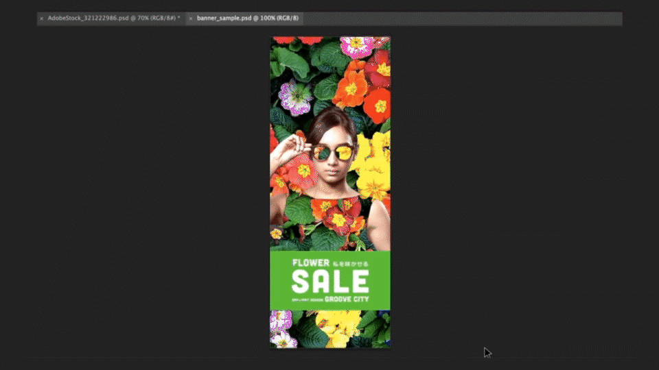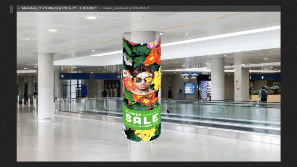 このチュートリアルでは、円柱の画像にポスターのデザインをフィットさせ、違和感なく仕上げる⽅法をご紹介します。まずは下の動画で⼀連の制作⼯程を確認しましょう。