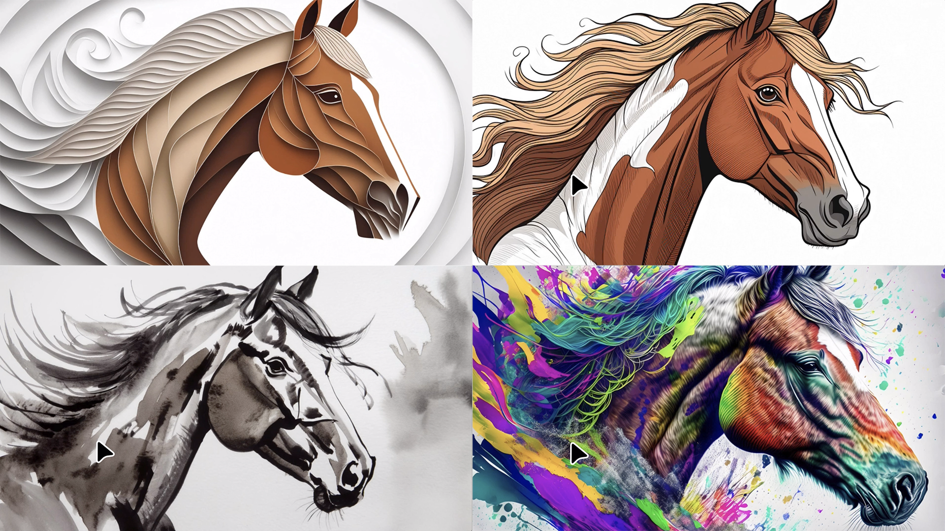 しばらくすると、彫紙アートスタイルの⾺の画像が⽣成され、カンバスに表⽰されます。
