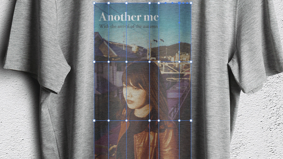 各コントロールポイントをドラッグすると、そのコントロールポイントが含まれるグリッド内の画像のみを変形させることができます。Tシャツのシワの凹凸に合わせて画像をゆがませていきます。