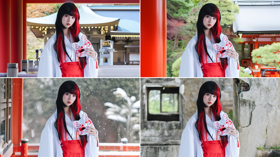 しばらくすると、人物の背景に神社の画像が生成されます。