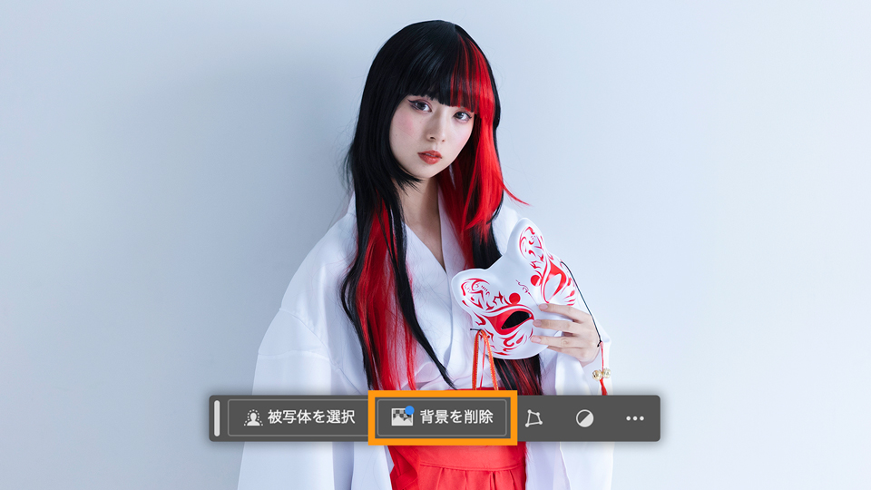 生成AIを活用した新しいワークフローでは、背景の削除からテキストプロンプトによる背景の生成、元画像とのシームレスな合成までを、コンテクストタスクバー内ですばやく実行できます。