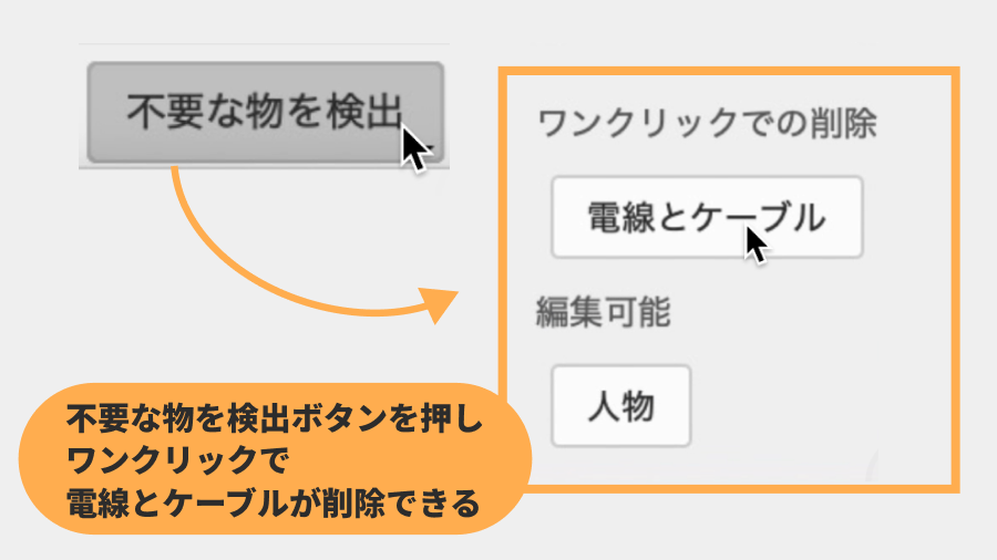 削除ツールは「不要なものを検出」という機能もあり、ワンクリックで電線とケーブルを削除できます。