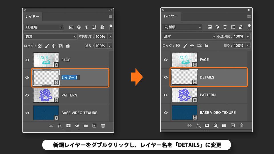 追加されたレイヤーをダブルクリックし、レイヤー名を「DETAILS」に変更します。