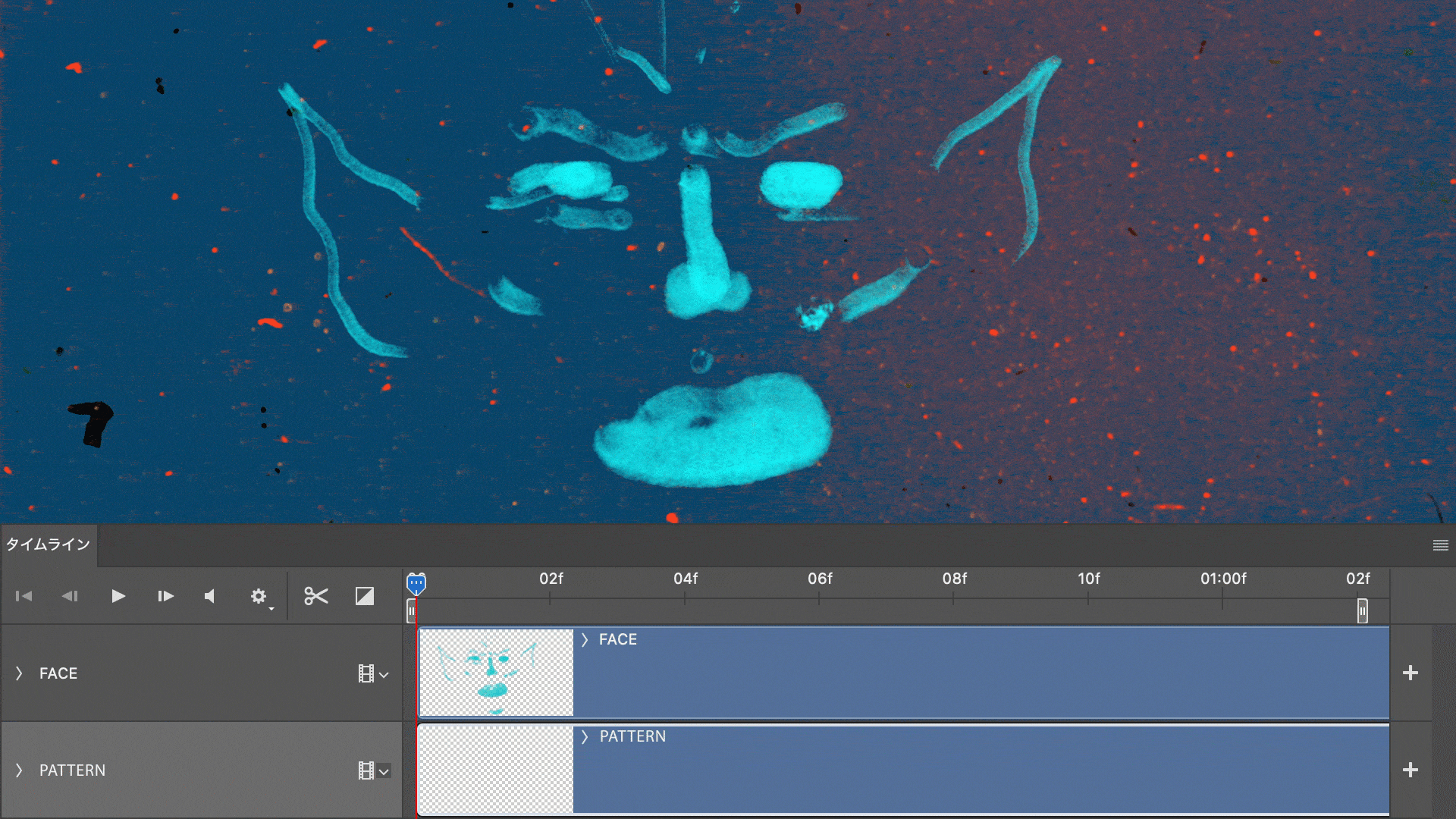タイムラインの「次のフレームに移動」をクリックし、同様の手順で各フレームにブラシで顔をペイントしていきます。