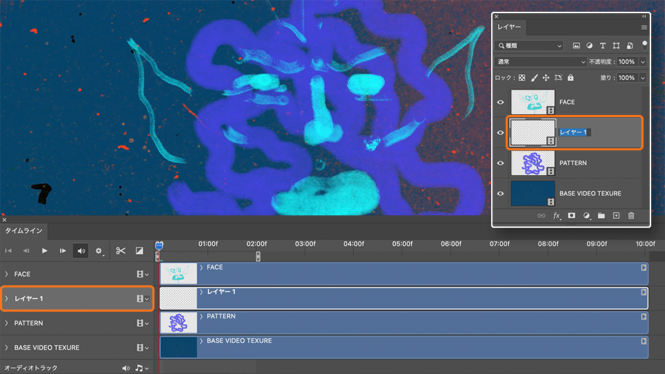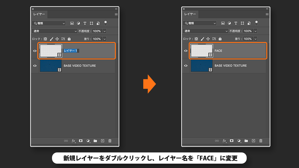 レイヤーパネルで新規レイヤーをダブルクリックし、レイヤー名を「FACE」に変更します。
