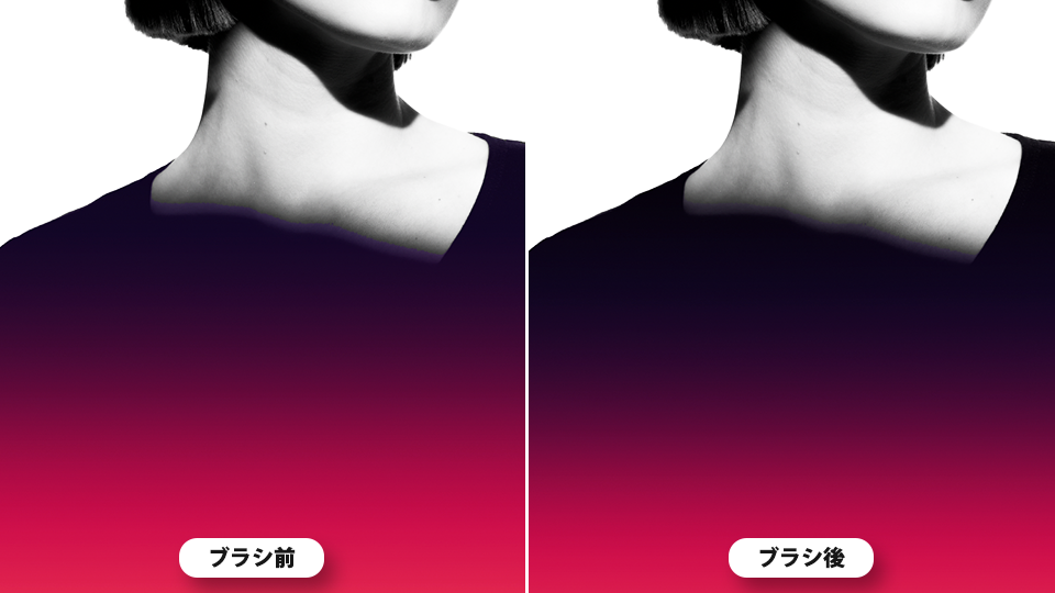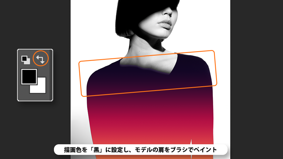 肩の領域のグラデーションの塗りつぶしがマスクされたことで、元の黒いドレス部分の見える領域が広がりました。
