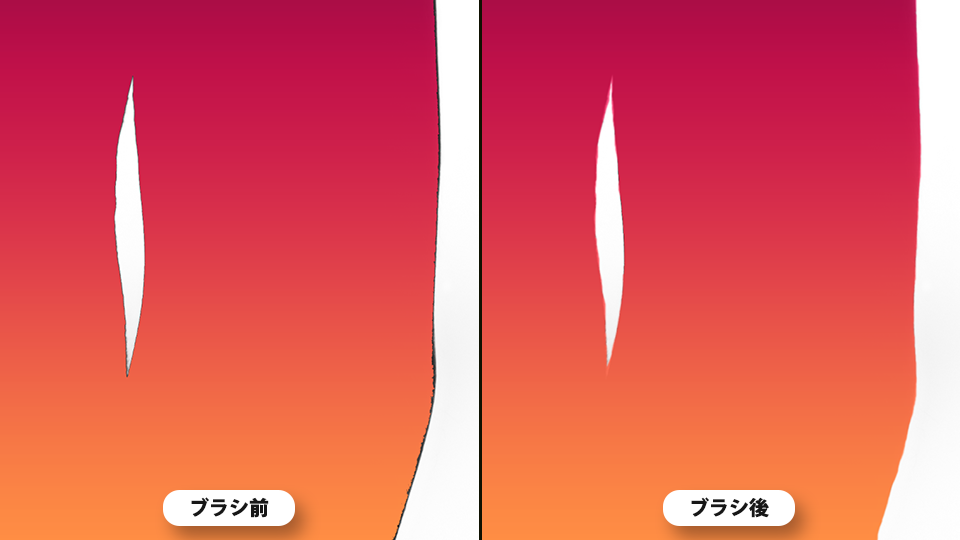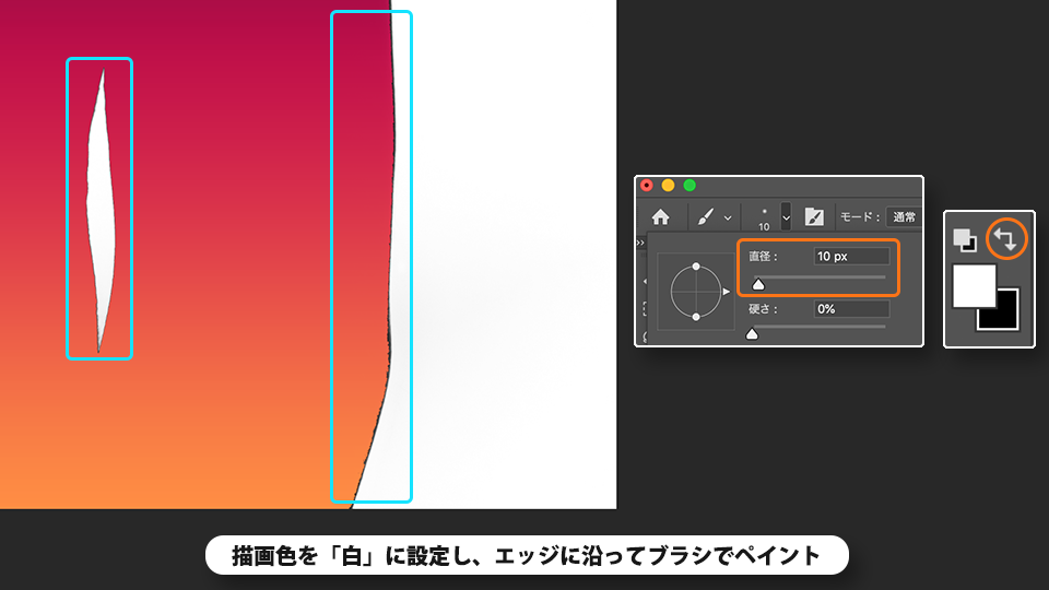 レイヤーマスクのエッジをペイントし、塗りつぶしの範囲を調整します。