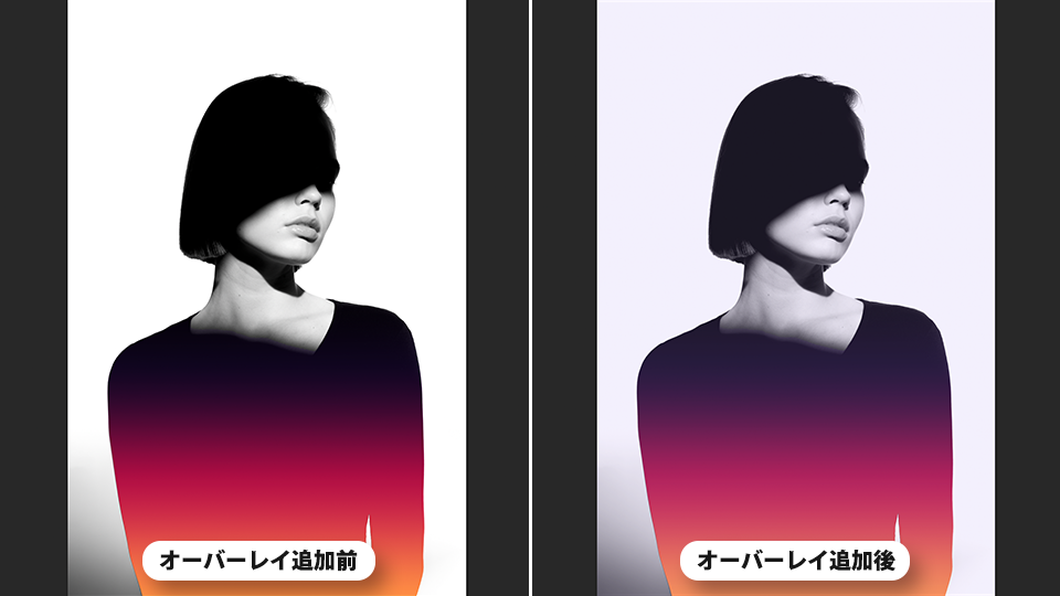 オーバーレイが作成され、画像全体に薄紫色で覆われた様になりました。