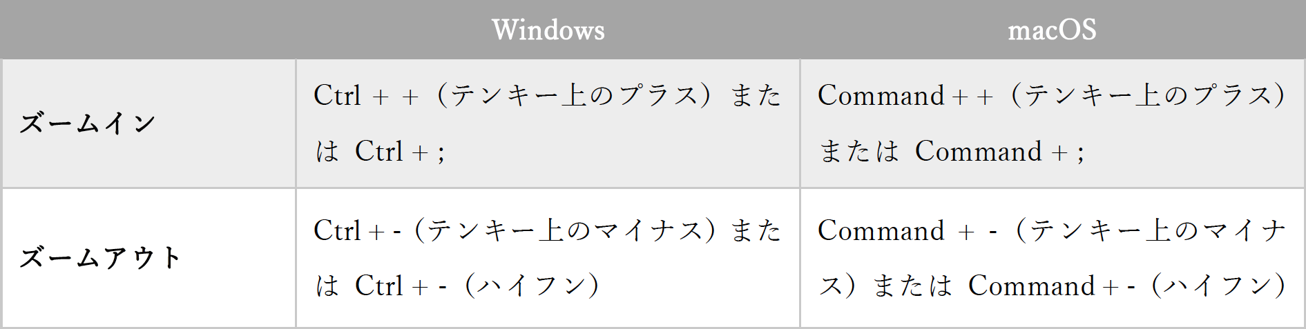 ドキュメントのズームインとズームアウトはショートカットキーを使用すると作業効率がアップします。