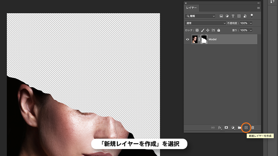レイヤーパネル下部の「新規レイヤーを作成」を選択し、レイヤーを追加します。