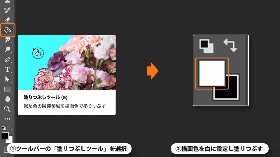レイヤーマスクを使用して、表示されている画像の範囲を白で塗りつぶします。