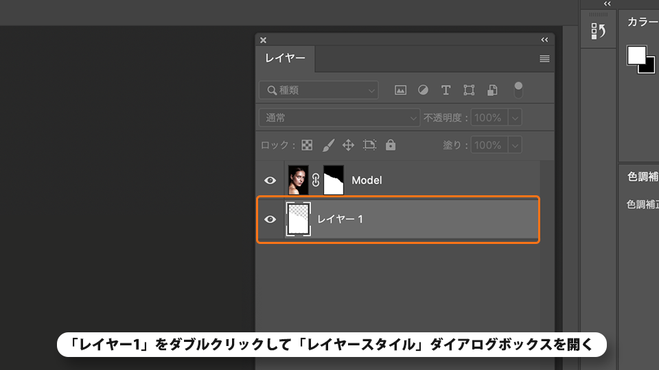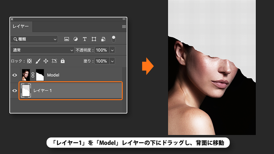 レイヤーパネルで「レイヤー1」を「Model」レイヤーの下にドラッグし、背面に移動します。