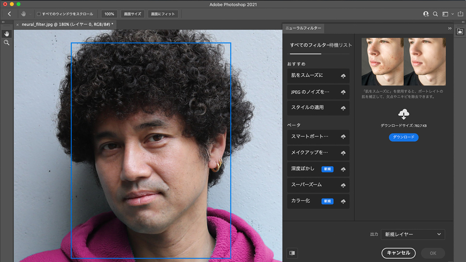 ニューラルフィルターの各種フィルターを最初に使用する場合、そのフィルターをダウンロードする必要があります。