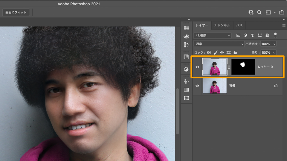 新規レイヤー :被写体の顔が切り抜かれた状態で、新規レイヤーとして出⼒されます。