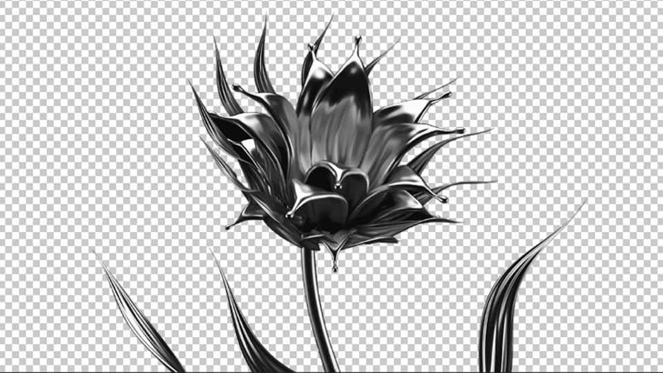 練習用のサンプルファイルを開きます。グレーの階調のみで表現された花のテクスチャ画像から、レイヤーマスクを使用して黒いべた塗りのシルエットを作成します。