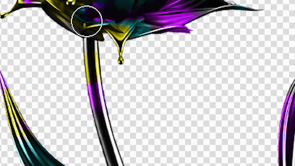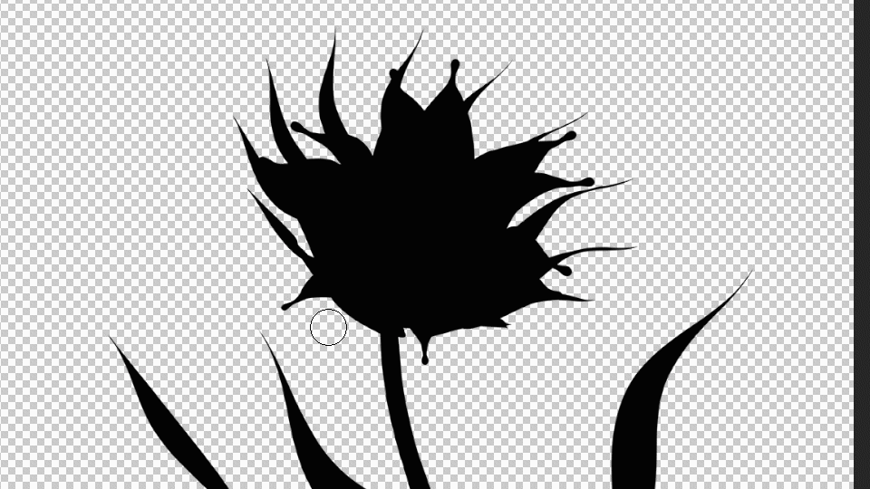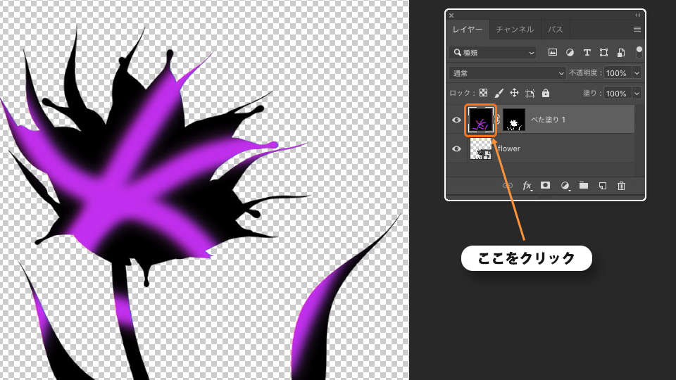 ここで花のシルエット上にペイントするには、適切に対象のレイヤーが選択されている必要があります。うまくペイントできない場合は、レイヤーパネルで花のシルエットのレイヤーが選択されているかをご確認ください。