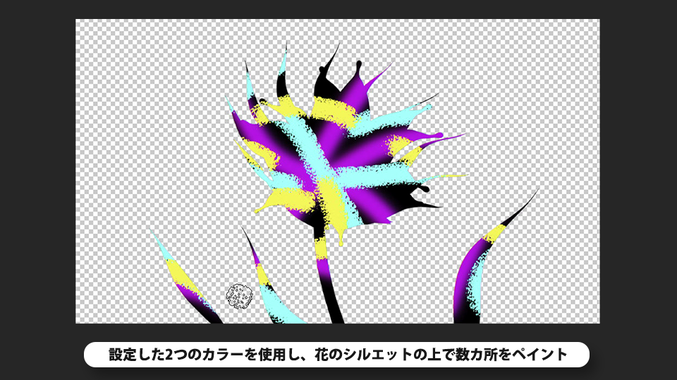 手順4で設定した2つのカラーを使用し、花のシルエットの上で数カ所をペイントします。